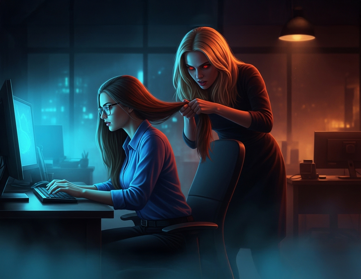 Berasa seram dengan keadaan itu, dia bergegas keluar dan kembali menyambung pekerjaan di mejanya.