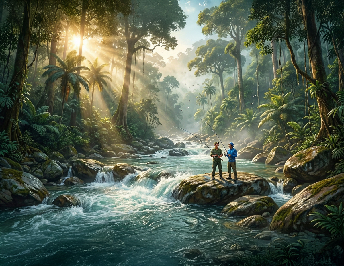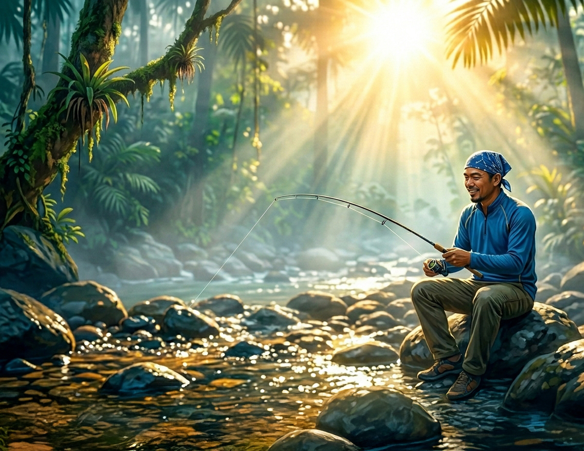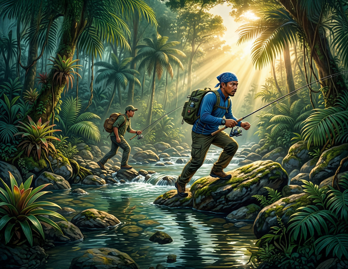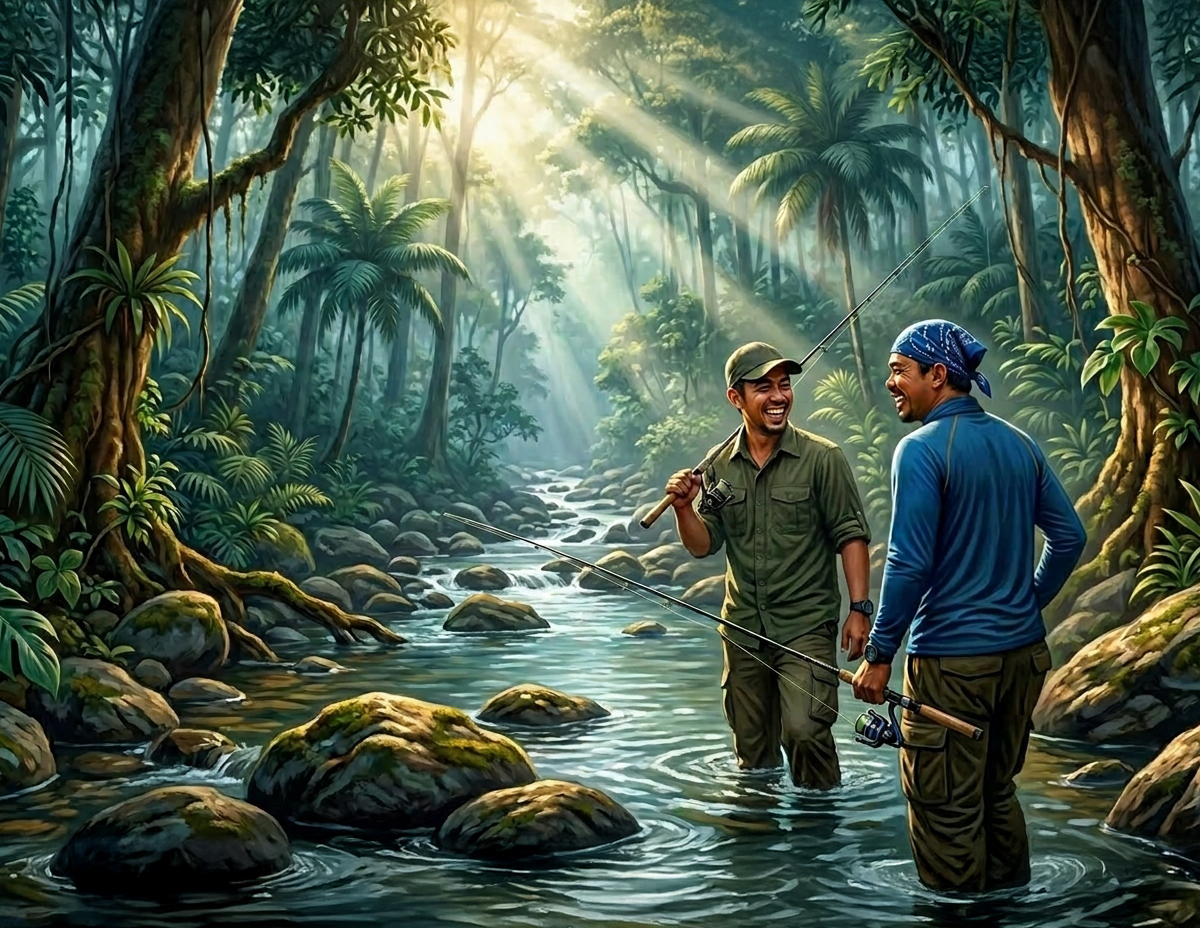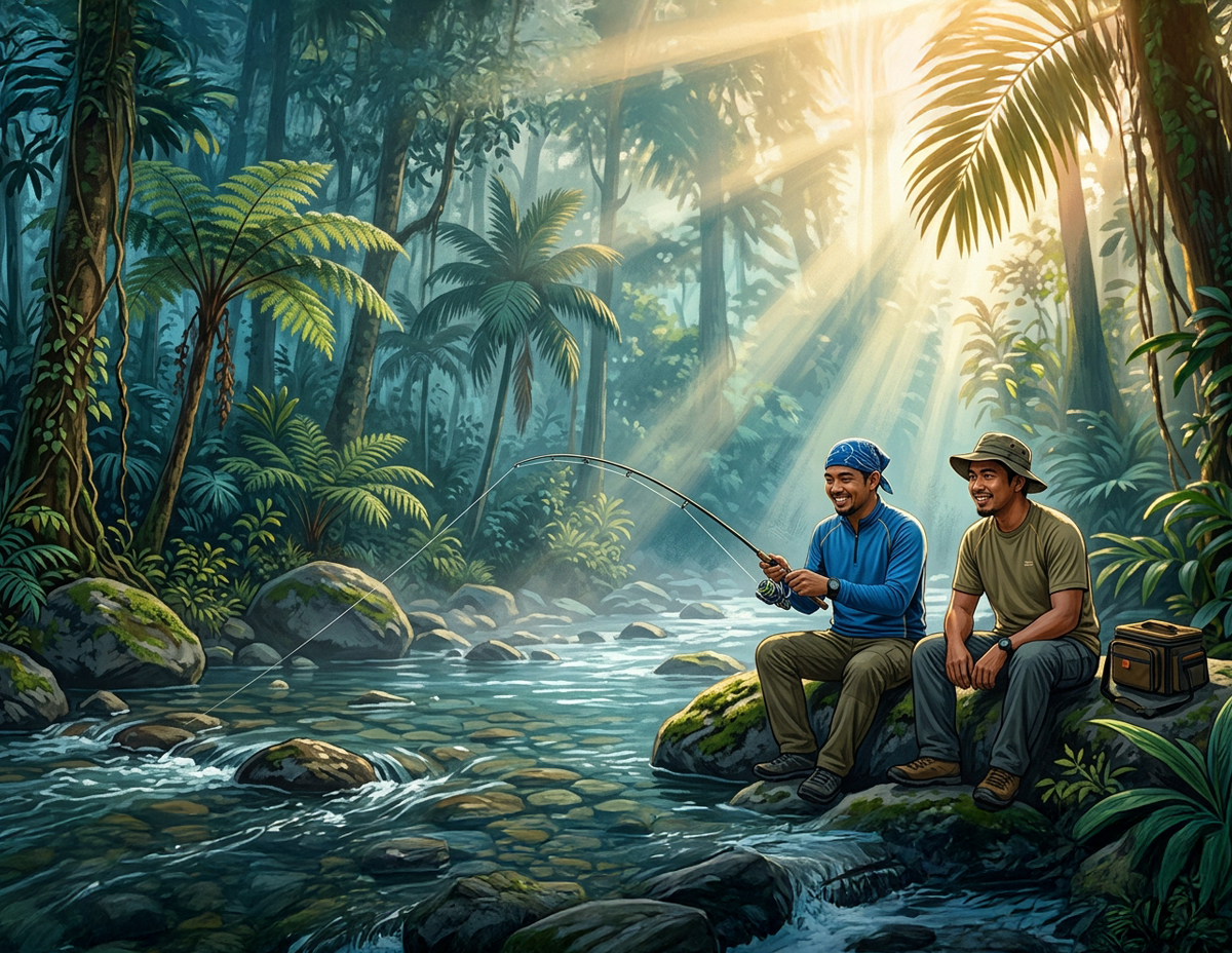 Selepas kira-kira empat jam, mereka akhirnya tiba di satu kawasan berbatu dan berjeram yang dilihat berpotensi menjadi lubuk ikan.