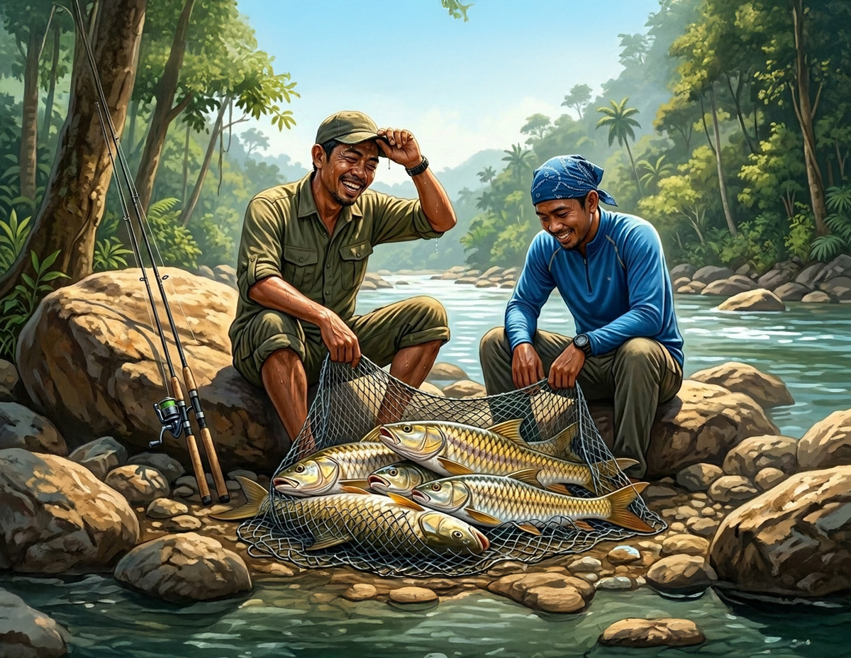 Jelasnya lagi, keterujaan memburu ikan air tawar itu menyebabkan mereka tidak menyedari bahawa matahari sudah berada tepat di atas kepala dan bahang panas sudah semakin terasa.