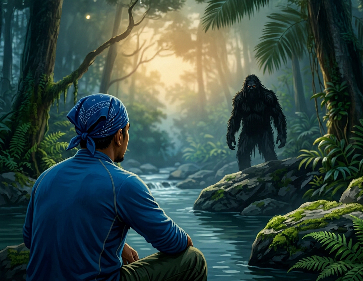 “Pada asalnya saya menyangkakan ia adalah rakan saya tetapi sebaik diamati, ia tidak menyerupai susuk tubuh manusia, tetapi lembaga hitam dengan badan yang begitu besar dan berbulu.