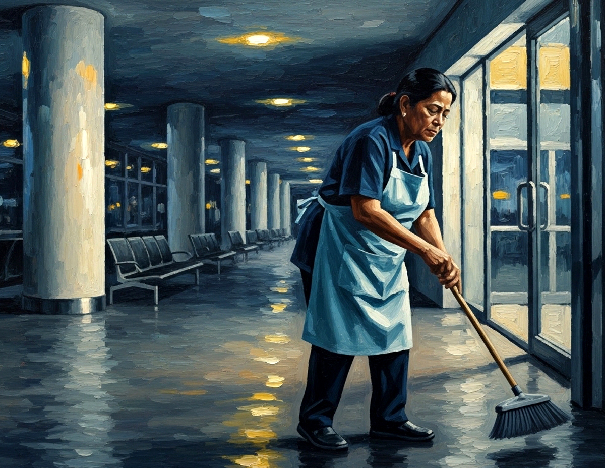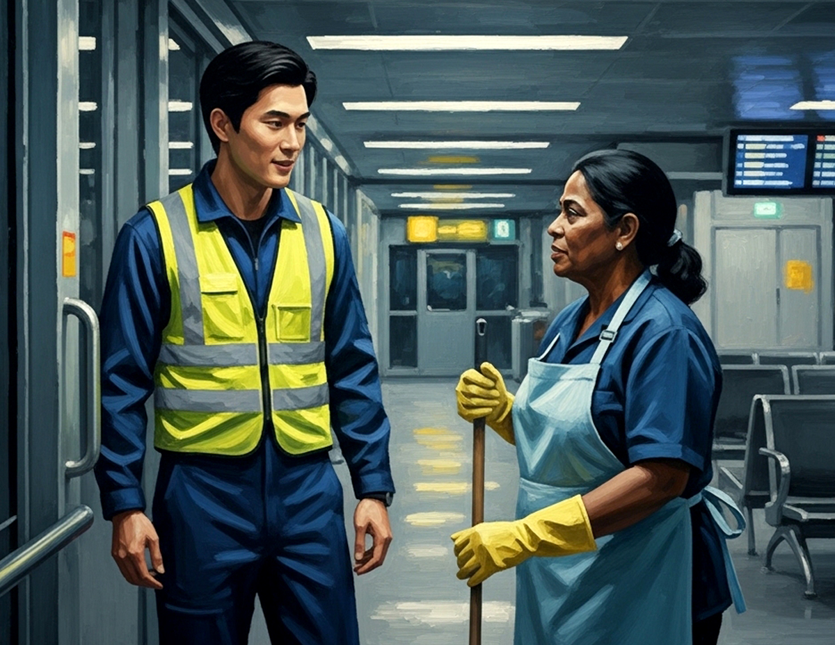 Ujar Amzar, seperti kebiasaan, mak cik dalam lingkungan usia hampir 60 tahun itu akan membersihkan tandas di sepanjang pintu gate pesawat selain menyapu kawasan ruang legar tempat penumpang menunggu.