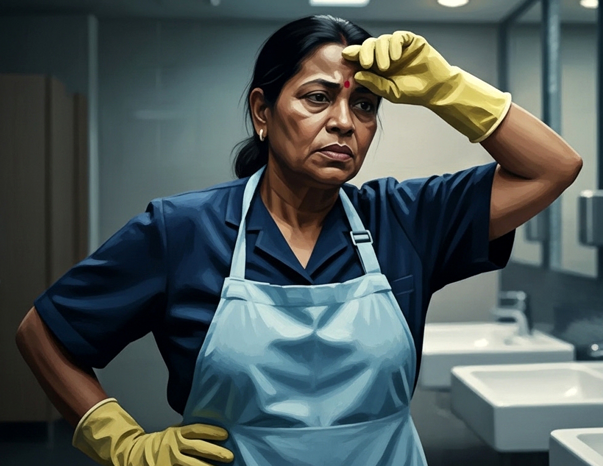 “Jadi bila saya masuk tandas, saya nampak mak cik India ini sedang leka menyapu dan fokus dengan kerjanya.