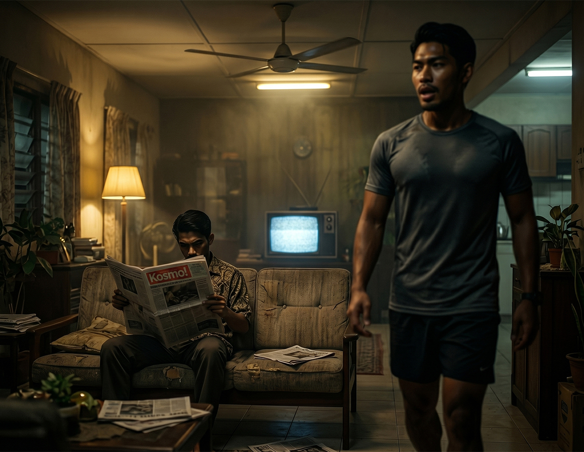 Rauf tidak menoleh mahupun menjawab. Dia masih lagi khusyuk membaca akhbar di tangannya. Hampir 20 minit kemudian barulah Johari muncul ke ruang tamu. Terus dia duduk berdekatan Rauf sambil membuka televisyen di hadapannya.