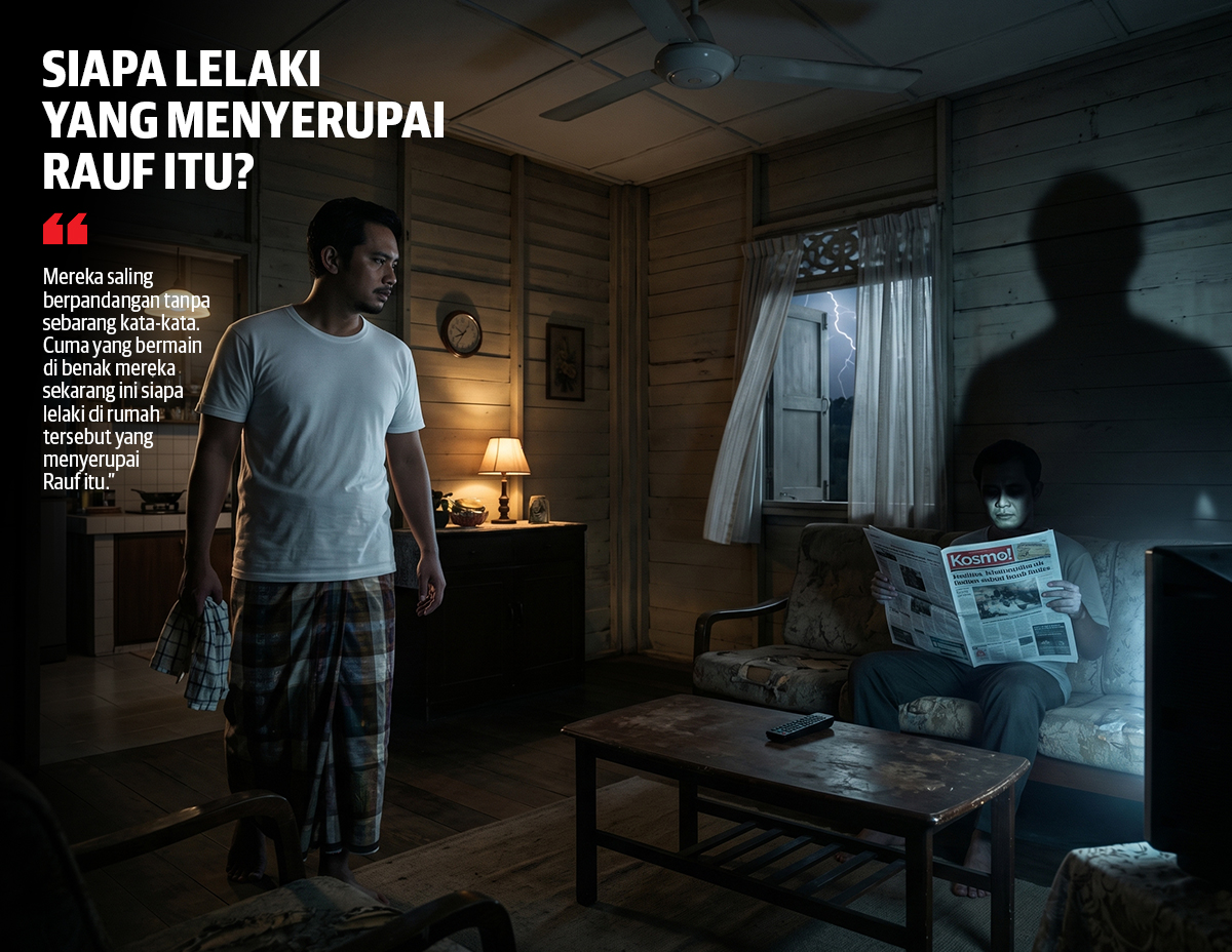 Mereka saling berpandangan tanpa sebarang kata-kata. Cuma yang bermain di benak mereka sekarang ini siapa lelaki di rumah tersebut yang menyerupai Rauf itu.