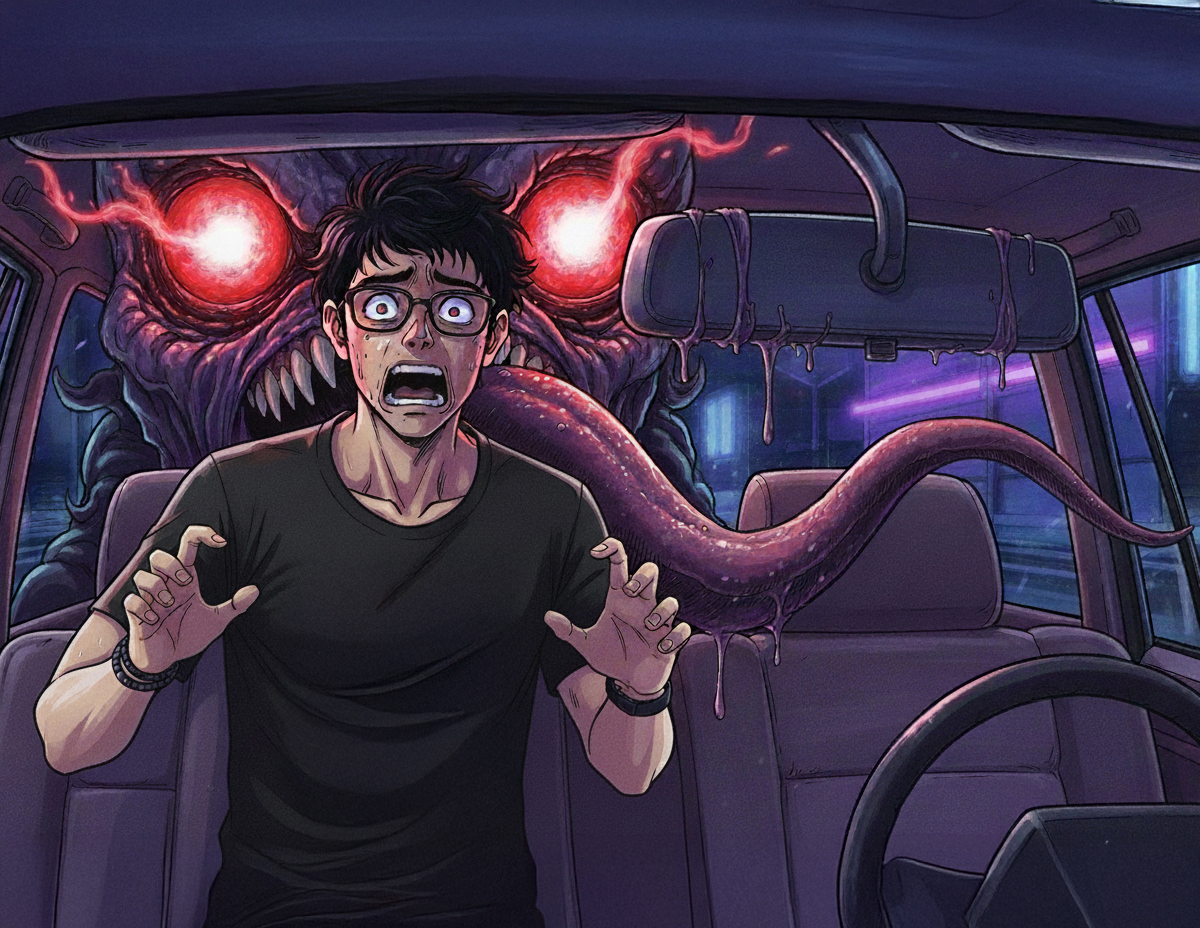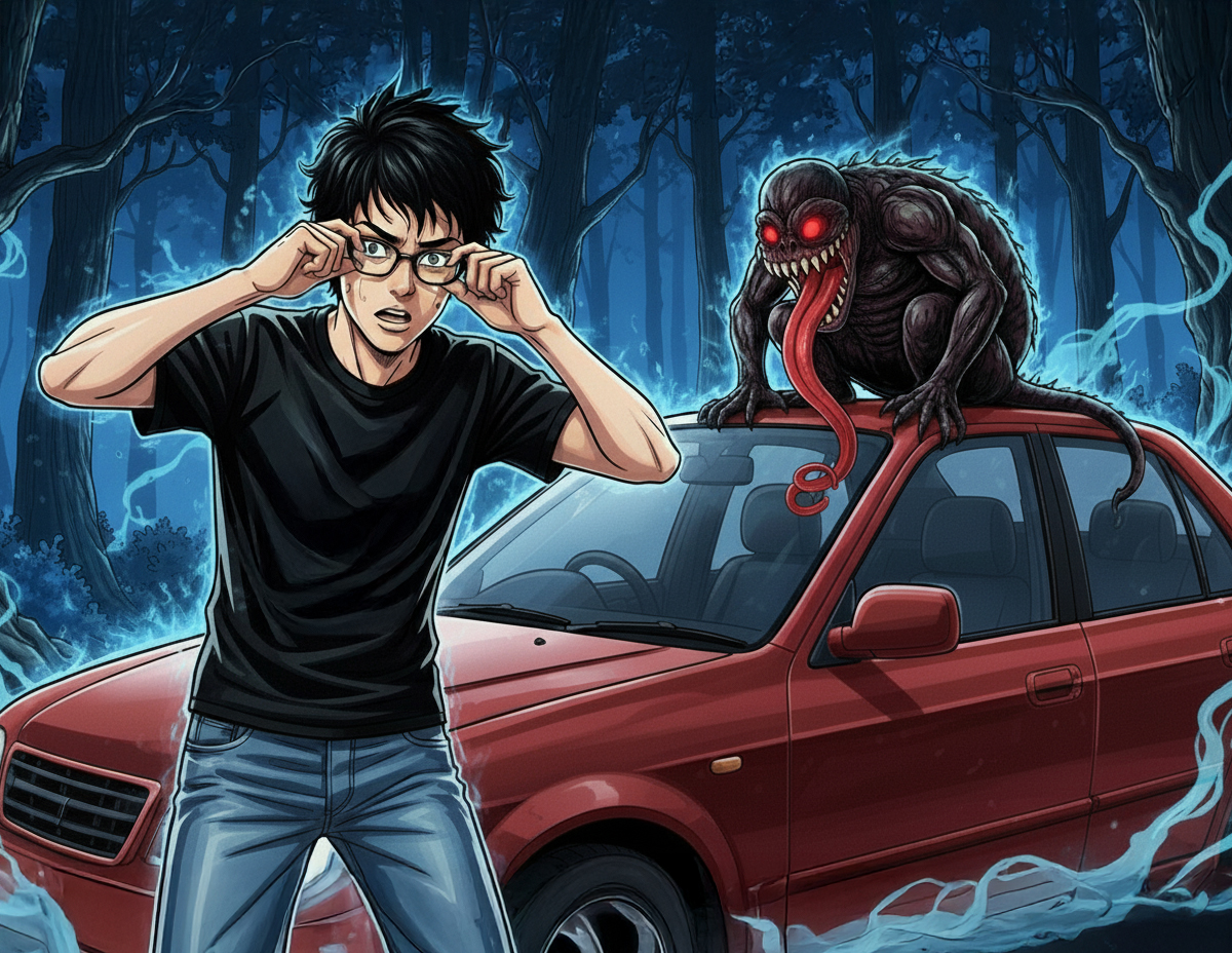 Rosman rasa seperti hendak pengsan. Jantungnya seolah disentap keluar dari tubuh. Lidahnya kelu. Kakinya seakan terpasak ke bumi. Dia tidak percaya dengan apa yang disaksikan di hadapan matanya ketika itu. Makhluk tersebut memandang tepat ke arahnya sambil merengus kuat. Sesekali dia menggerakkan badannya sehingga menyebabkan kereta tersebut bergoyang ke kiri ke kanan.