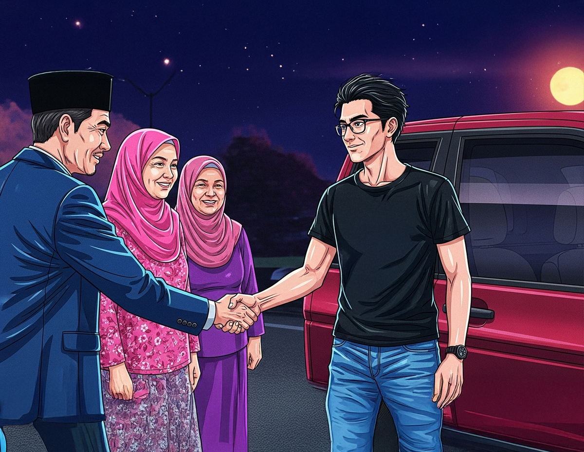 Selepas bersalaman dan mengucapkan selamat tinggal kepada kedua ibu bapanya, Rosman menghidupkan enjin kereta dan memecut pergi. Sudah pukul 12.15 tengah malam, bisiknya dalam hati. Dia mesti sampai awal ke rumah kerana perlu menyiapkan pakaian dan keperluan lain, maklumlah esok pagi dia terpaksa menghadiri mesyuarat penting.