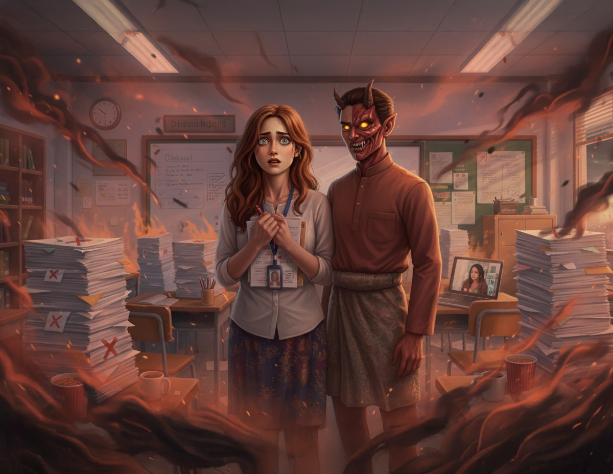 Kisah seram ini telah diterbitkan di akhbar Kosmo! Ahad. Ilustrasi janaan AI