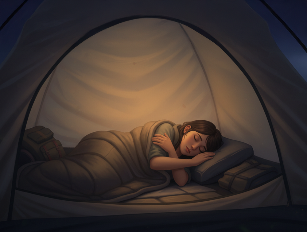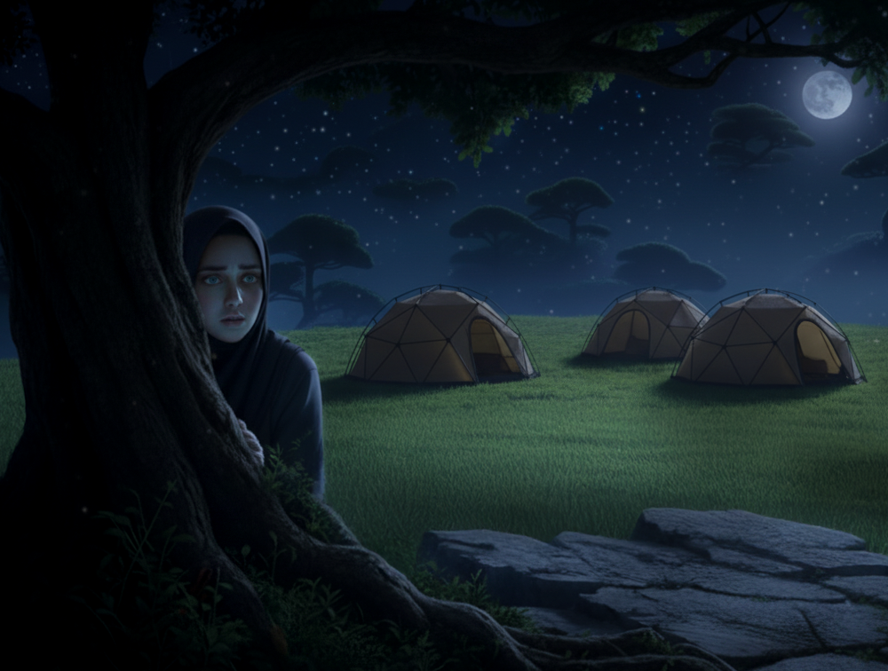 Dalam keadaan ketakutan jelasnya, dia segera masuk semula ke dalam khemah dan mendiamkan diri sehingga tertidur.